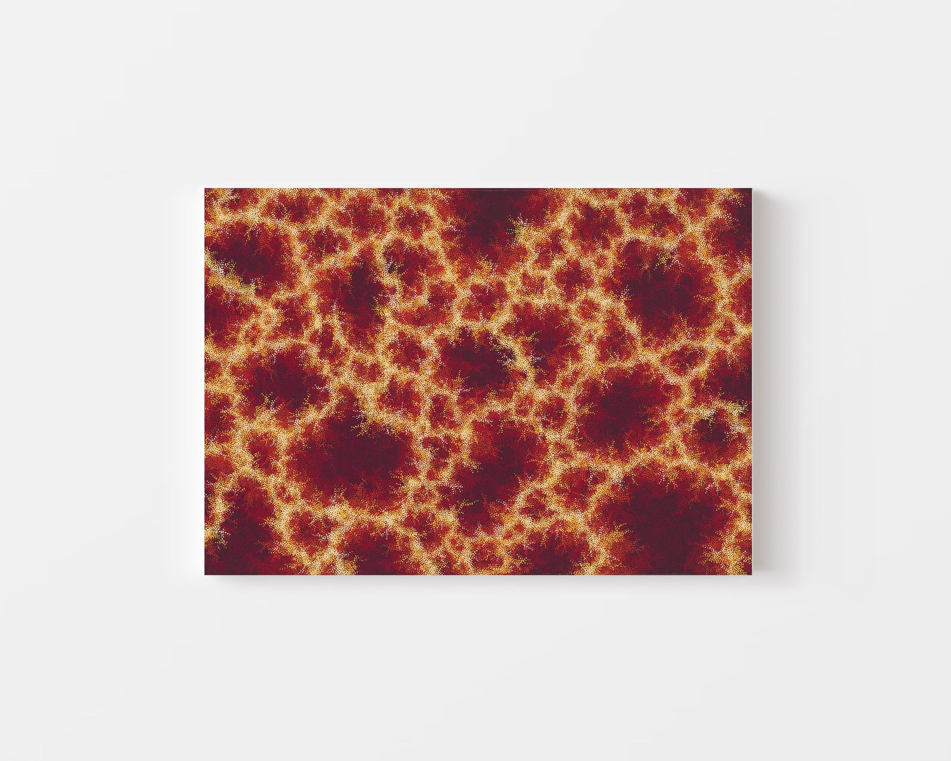 A stretched canvas is professionally stretched over a timber frame, ready to hang.
