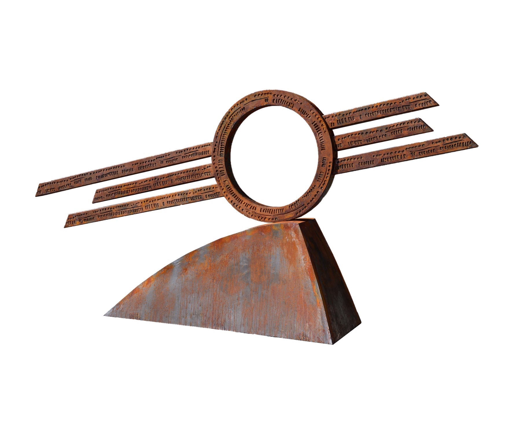 With this sculpture Sarrita wanted to translate her ‘Our Land” story into a 3D object. The choice to use metal is a reflection on the strength and longevity of the Australian Indigenous culture and the stories passed down over the centuries. The rust is a reflection of the age of the markings and long history of these stories.