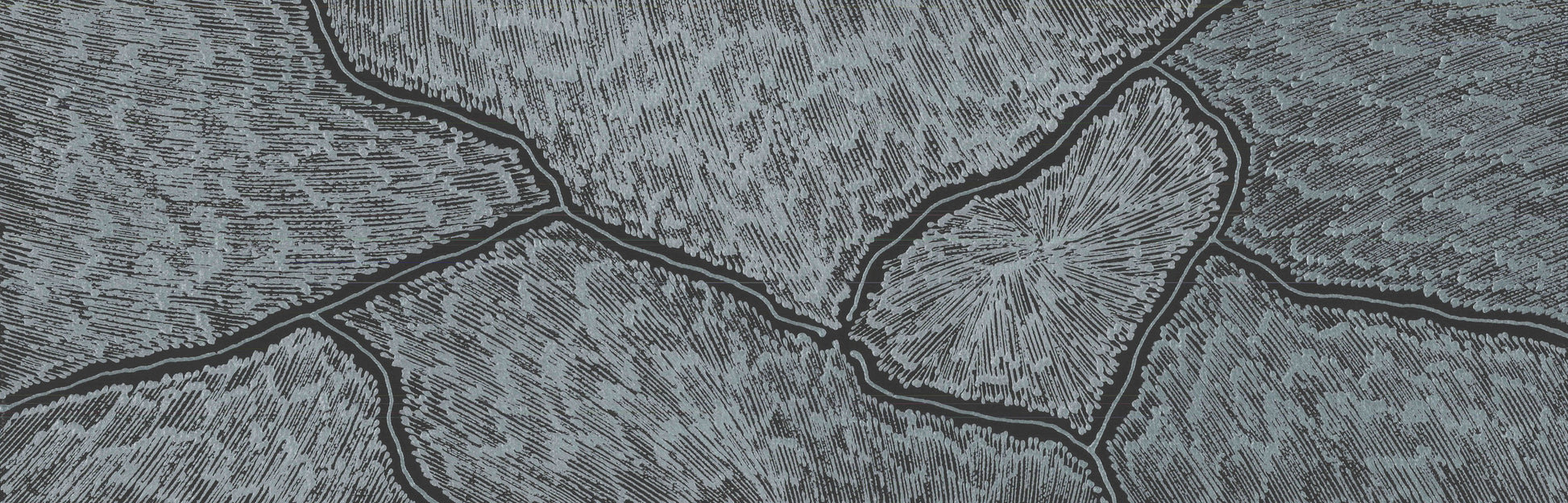 Sarrita’s Lightning paintings are a painted memory of the electrical storms in the tropical climate of Darwin where Sarrita spent her youth. The lightning would crack across the entire sky, creating lines not dissimilar to cracked earth. And with the lightning came the winds that in their fury whipped up all the dust, rain, heat and magnetic energy into a maelstrom in the air. Sarrita would discover new patterns and colours every time she witnessed these natural light shows.