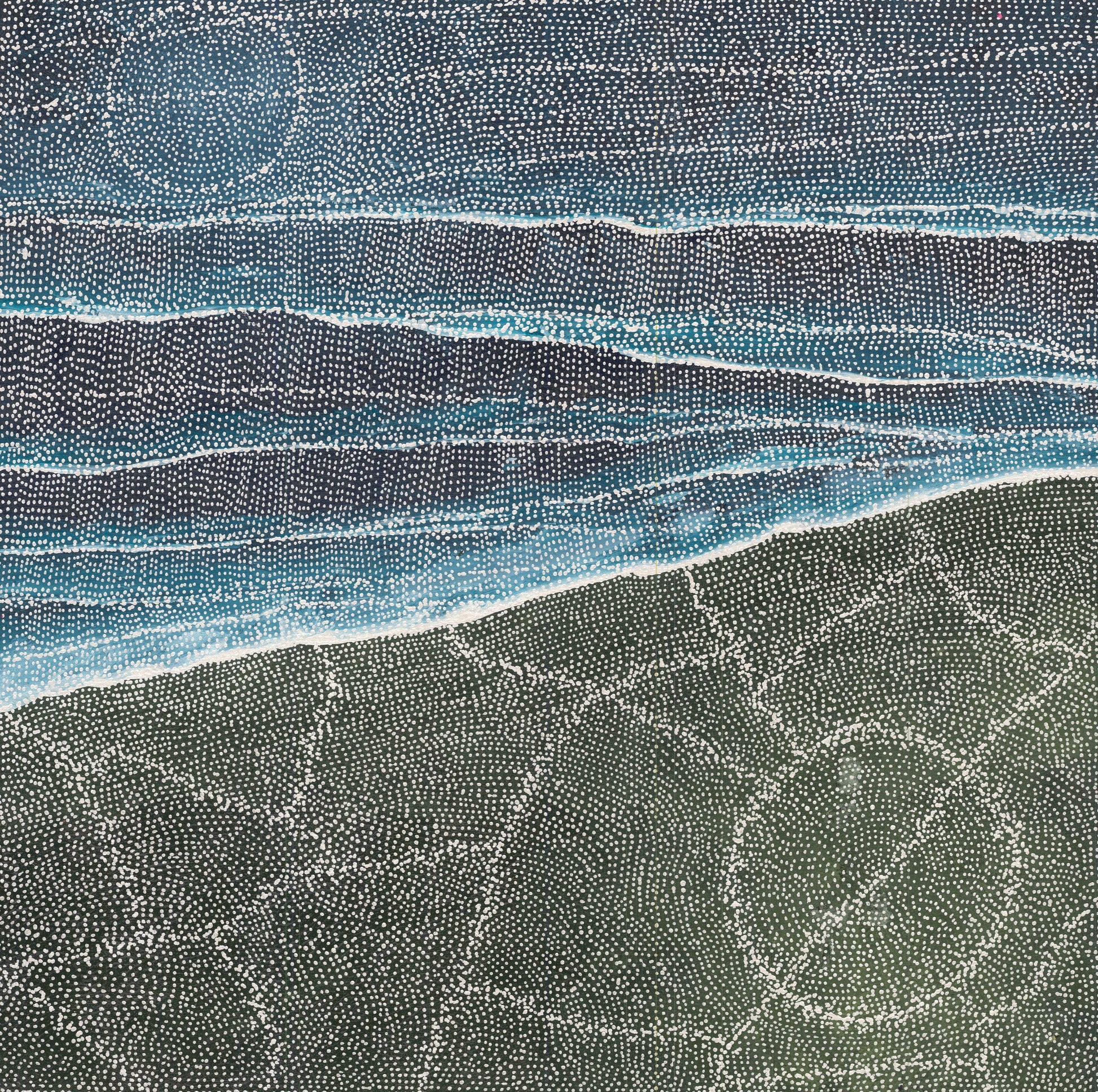 his painting is inspired by the elements. Growing up in Darwin Sarrita has always been in awe of the elements, such as water, and the way it meets the land. The beauty of the coast line, hides the treacherous danger of NT's top end waters.