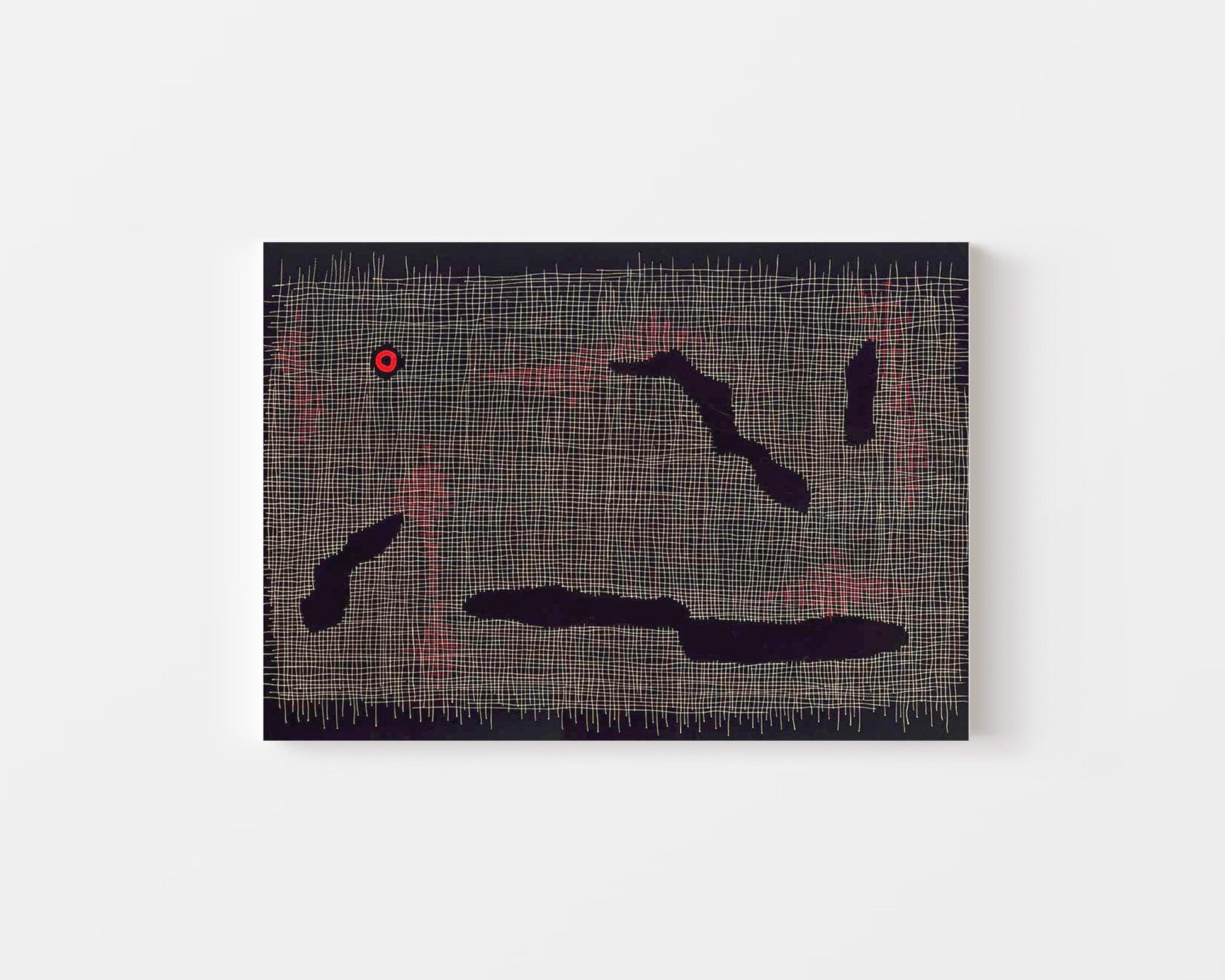 Our Land represents the beauty of country, the continuous lines of Ancestors, travel and connection. These lines are fading and obscured, but still present. The eye is drawn to the red of the circle, this is used to represent home, it will always call to us, and the land will always carry us home.